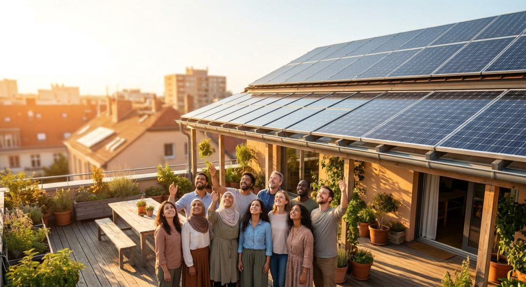Năng lượng mặt trời cộng đồng là một mô hình cho phép nhiều người cùng hưởng lợi từ một dự án năng lượng mặt trời duy nhất. Thay vì lắp đặt các tấm pin trên mái nhà riêng lẻ, các tấm pin này được tập trung tại một địa điểm chung, chẳng hạn như trên một mái nhà kho lớn hoặc một khu đất trống.