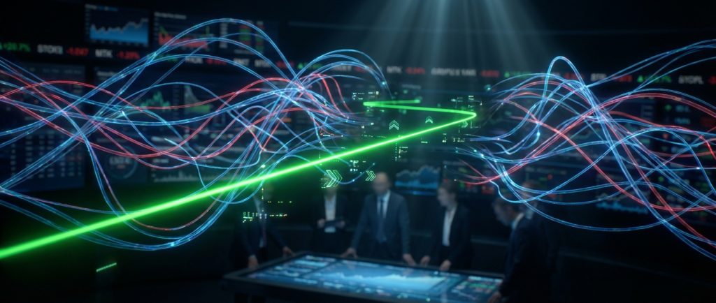 Một giám đốc vận hành đang phân tích các kịch bản dòng tiền trên màn hình lớn, chuẩn bị cho các biến động thị trường.