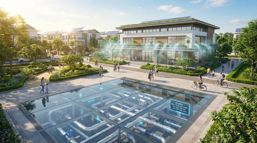 Bơm Nhiệt Địa Nhiệt: Làm Mát Cộng Đồng Quy Mô Lớn
