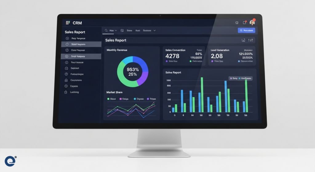 Hình ảnh minh họa một giao diện báo cáo doanh số trực quan trên phần mềm CRM.