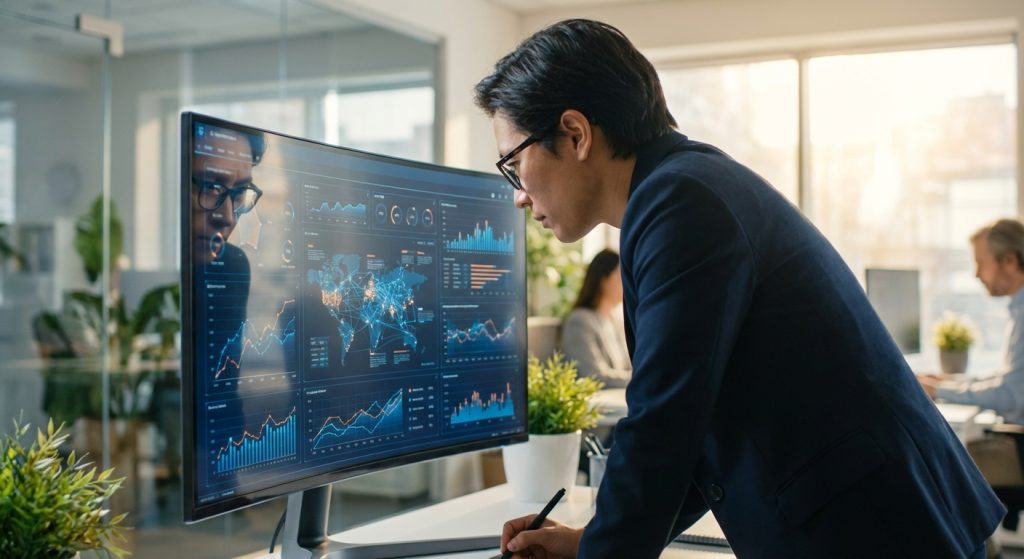 Một nhà quản lý CNTT đang xem xét bảng điều khiển tích hợp, phát hiện các tiềm năng chưa được khai thác.