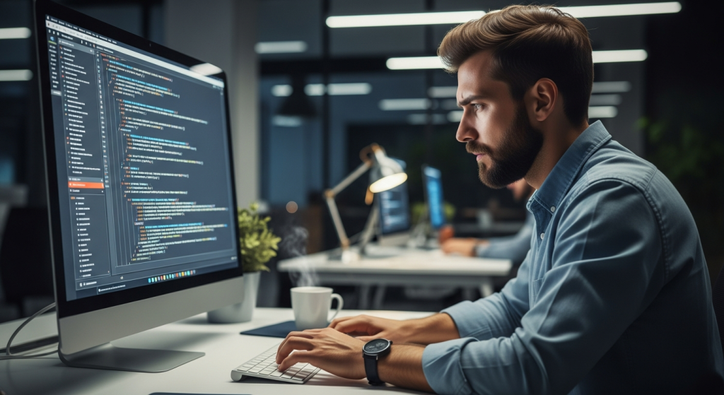Một nhà phát triển đang ngồi trước màn hình, chăm chú rà soát danh sách các dịch vụ API đang hoạt động như một người làm vườn tỉ mỉ cắt tỉa những cành cây khô héo.