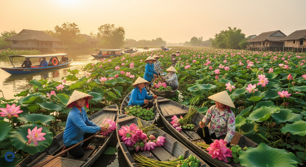Cánh đồng sen bát ngát tại Đồng Tháp, nơi nông dân biến tiềm năng du lịch sinh thái thành lợi nhuận.